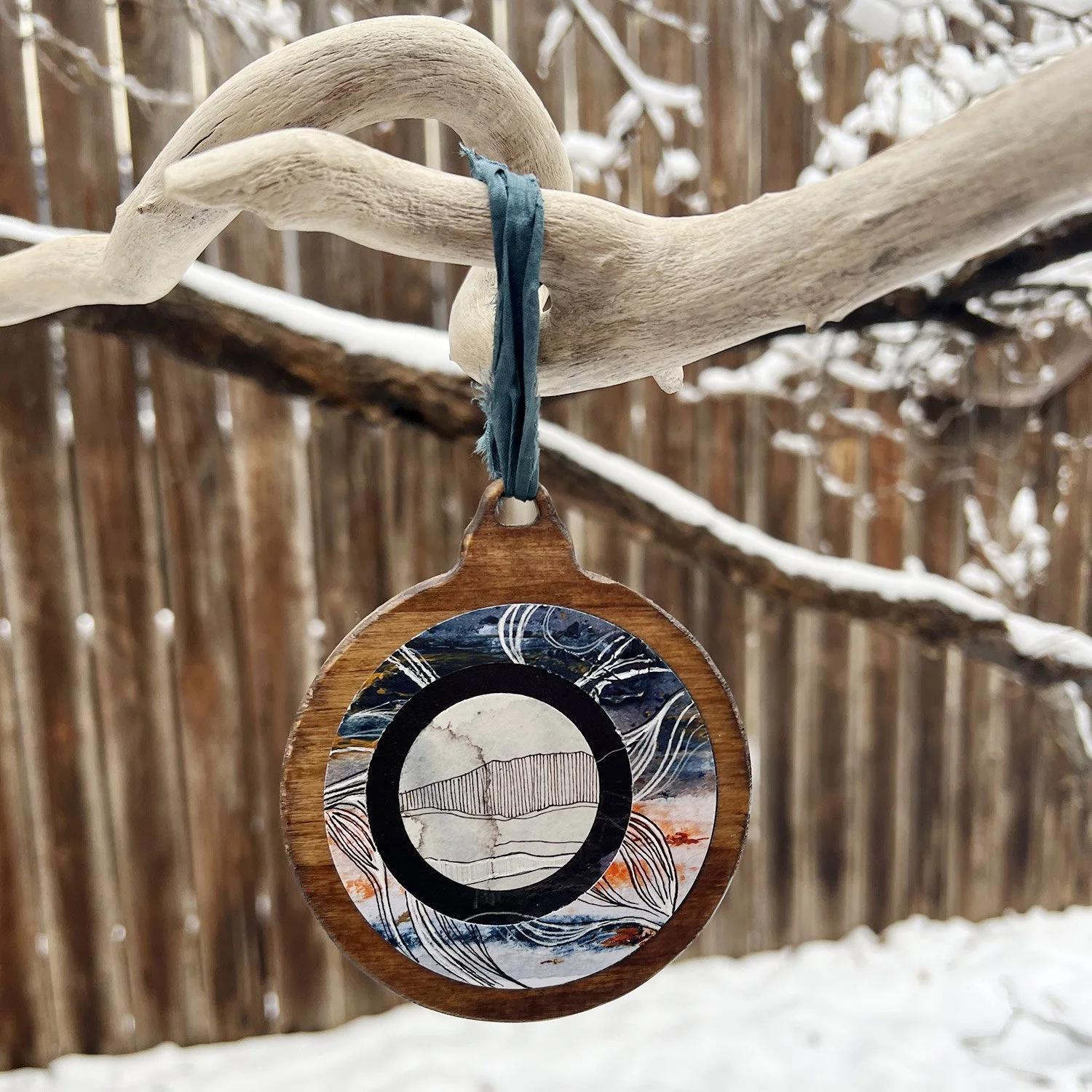 This Palette Cleanse ornament uses leftover paint from my glass palette. Colors are never consciously chosen by me, but rather by my putty knife’s swipe and the paint left behind from my canvas paintings.